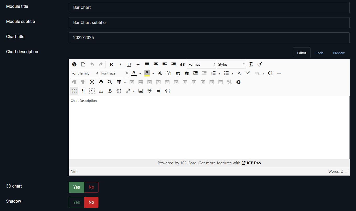- Article Integration: Designed to integrate seamlessly, these modules allow you to embed dynamic visualizations directly into your Joomla articles, making your content data-driven and engaging.