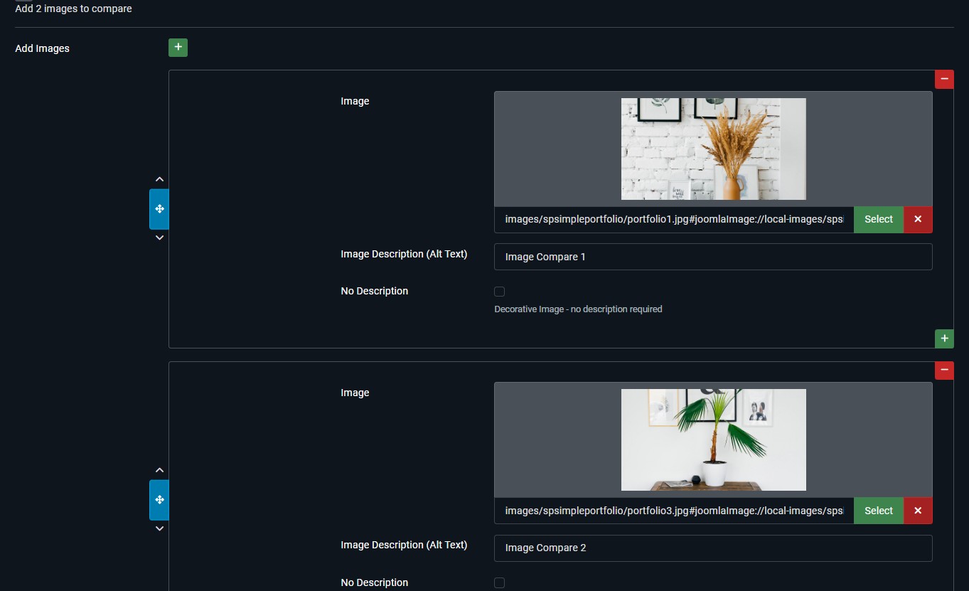 - Intuitive Configuration: The configuration is straightforward. Just navigate to the module settings, use the "Add Images" subform, and select your two media files.