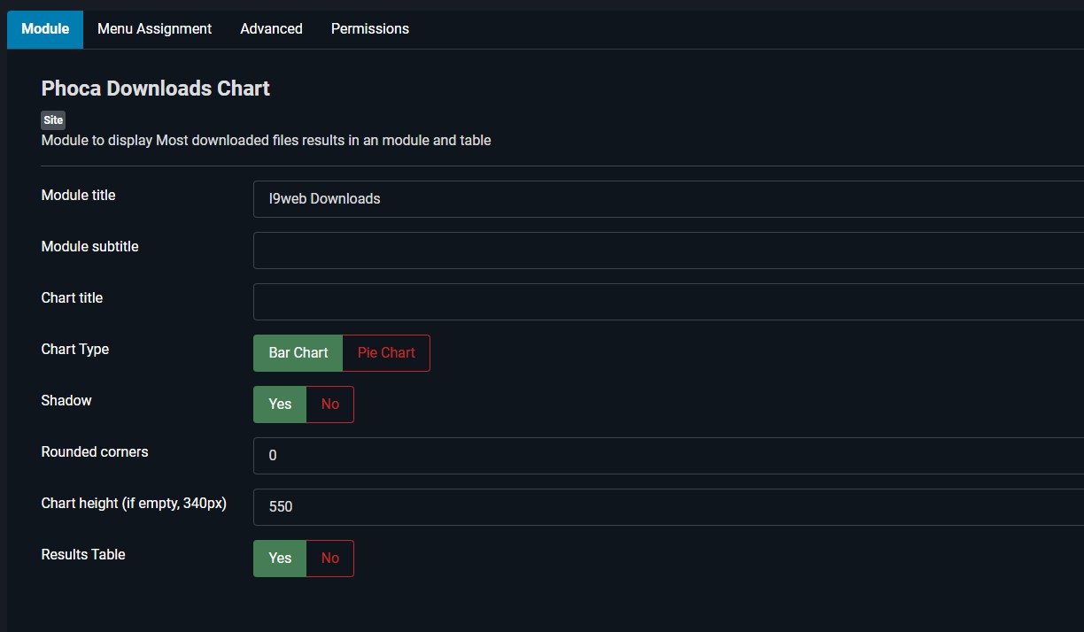 - Optional Results Table: For users who need the raw data, the Phoca Downloads Chart module includes an option to display the statistics in a simple table alongside the chart.