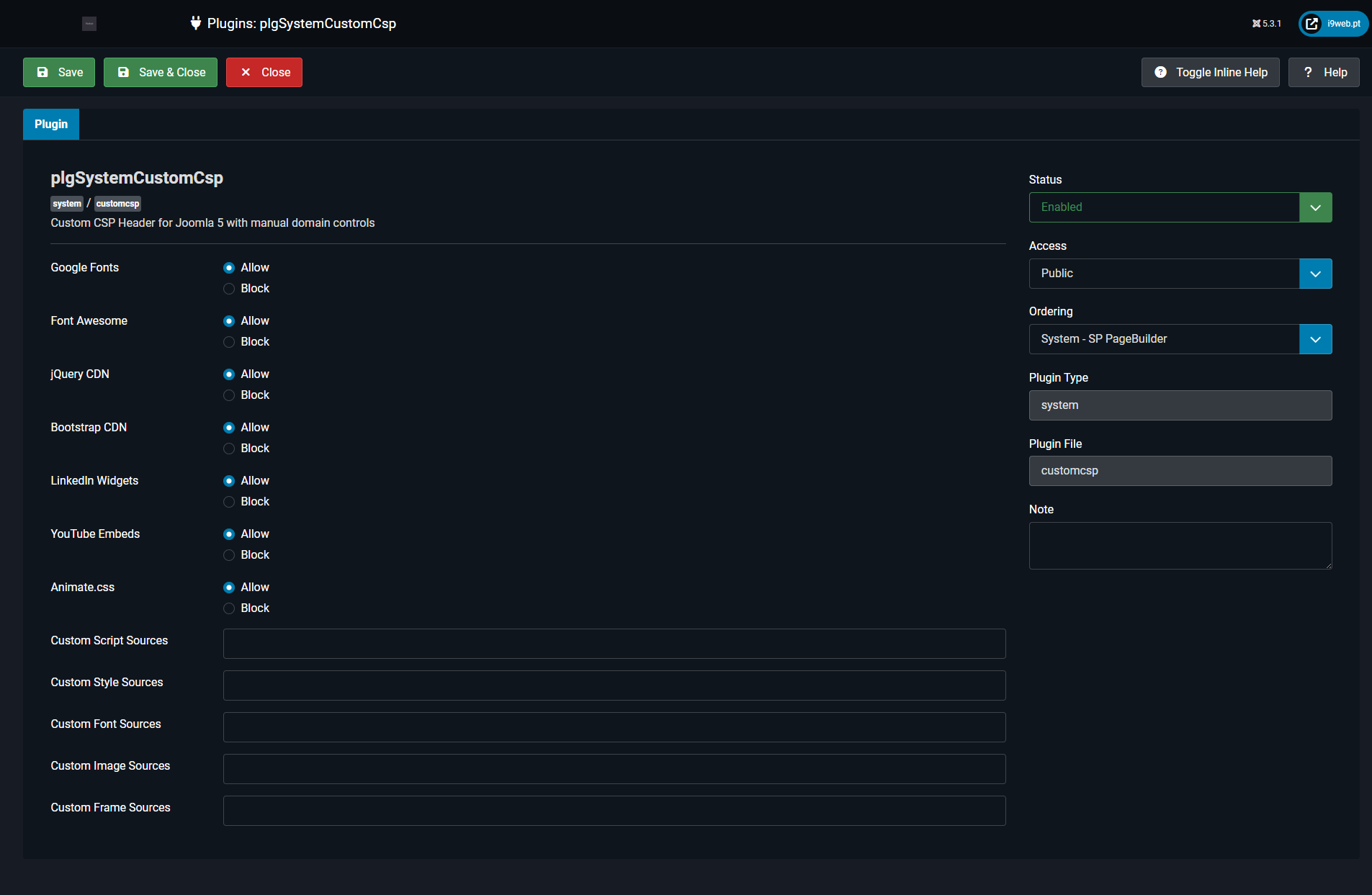 plgSystemCustomCsp – Joomla 5 Content Security Policy Manager